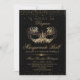 Stylish modern Masquerade ball invitation. Elegant handwritten calligraphy combined with gold ( imitation gold) a modern font on a dark black background complement each other and look harmonious at the same time.
