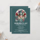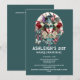 The face of a beautiful woman with porcelain white skin and ruby red lips is wearing a fantasy inspired eye mask in a metallic teal blue edged with faux gold that is adorned with opulent feather plumes and florals. She is wearing a ruffled, rouged top that has burgundy and white roses around it and soft pink ribbons on which a pale blue butterfly appears. This watercolor ai graphic is set against a dark teal blue background that has editable white templates on it for your custom wording. These are ideal for a bachelorette, birthday, sweet sixteen; milestone or quinceanera party. Simply personalise the editable text templates to suit your special occasion.