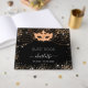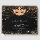 A guest book for a feminine and glamourous 21st (or any age) masquerade themed birthday party. A stylish black background with faux gold glitter dust and a masquerade mask. Add your name, age 21/text.