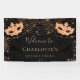 For a girly and glamourous Quinceañera, 15th birthday party. A stylish black background. Decorated with faux gold glitter dust and masquerade masks. Personalise and add a name.