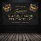 Featuring an ornate gold masquerade mask, shimmering faux-gold glitter accents, and a rich black background, this banner sets the perfect tone for a night of elegance and mystery.