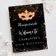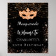 A welcome board for a girly and glamourous 50t (or any age) birthday party. A stylish black background. Decorated with faux gold glitter dust and a masquerade mask. Personalise and add a name.