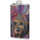 Well made flask, a little better than I had expected. Flask came in clear plastic box which gave it a nice presentation when I took it out of the zazzle packaging. Image is not printed on flask but on sticker. Don't know how this will hold up I haven't used it yet. This would make a Great gift! I plan to purchase more for friends! Cheers. I thought a little brighter than computer. Very crisp, writing wasn't