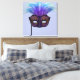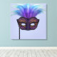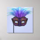 3D digital render of a beautiful masquerade mask with feathers on purple background