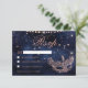 Masquerade rsvp mask rose gold glitter sparkles with dark blue watercolor, a hand drawn luxurious gold mardi gras mask with rose gold diamonds glitter confetti. Perfect for birthday party, masquerade ball or weddings.