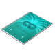 Features a masquerade mask topped with a fan of feather and dangling tassels on the sides. Done in a dark teal turquoise and white. An elegant design. Personalised if you wish.