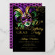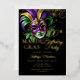 Set against a dramatic black background, the mask’s intricate detailing evokes mystery and elegance, while the coordinating purple glitter-style back adds a festive, upscale touch. Perfect for masquerade-themed birthdays, elegant evening parties, or sophisticated milestone celebrations, this invitation is fully customizable with your event details.