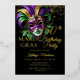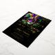 Set against a dramatic black background, the mask’s intricate detailing evokes mystery and elegance, while the coordinating purple glitter-style back adds a festive, upscale touch. Perfect for masquerade-themed birthdays, elegant evening parties, or sophisticated milestone celebrations, this invitation is fully customizable with your event details.