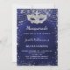 For an elegant Masquerade, Quinceañera, 15th birthday. A trendy navy blue background, the blue colour is uneven. Decorated with faux silver glitter dust and a masquerade mask. Personalise and add a name, age and party details. The name is written with a hand lettered style script