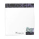 5.5” x 6” white notepad with an image, at the top, of purple lace over black. At the bottom right is an image of purple lace over black, a beautiful mask wove with ribbons of blue, gold, green, purple, and fuchsia with sparkling silver trim. Optional text. See the entire Mardi Gras Notepad collection in the PARTY FAVORS section.