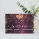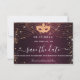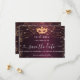 A girly and trendy Save the Date card for a 50th (or any age) birthday masquerade party. A burgundy background decorated with faux gold glitter, sparkles and a masquerade mask. Personalize and add a date and name/age. The text: Save the Date is written with a large trendy hand lettered style script.
