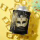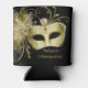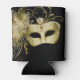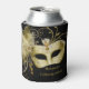 Black gold masquerade party favour can coolers with gold mask on a choose your own colour background and text.