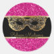 Masquerade Party Gold Pink Glitter Birthday Classic Round Sticker