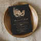 Stylish modern Masquerade party 15th invitation. Elegant handwritten calligraphy combined with a modern font on a dark black background complement each other and look harmonious at the same time.