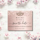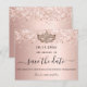 A Save the Date card for a 50th (or any age) birthday masquerade party. A rose gold background decorated with confetti and a masquerade mask. Personalise and add a date and name/age. The text: Save the Date is written with a large trendy hand lettered style script with swashes.