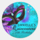 Quinceanera Sticker. 15th Birthday. Pretty sparkle mask with purple & teal feathers.