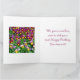 Above a colourful field of pansies is the text: "Today Even Flowers Bloom in Your Honour" and inside: "We, your co-workers, want to wish you a most Happy Birthday. You deserve it!" All text is customisable. Room on large card for several signatures and notes to the birthday person.