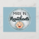 This funny postcard features a cute white baby face that says "Made In Massachusetts" on a blue background. Perfect for new baby announcements or just for fun.