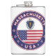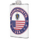 Badge of Massachusetts with flag of Massachusetts and flag of USA colours, rounded shape.