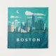 “Boston Skyline Art – Retro City Illustration, Massachusetts Night Cityscape, Urban Travel Decor Design“