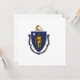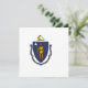 This design features the flag of the state of Massachusetts, officially known as the Commonwealth of Massachusetts. It is the most populous state in the New England region of the northeastern United States. The flag contains a blue seal on a white background; it bears the state motto "Ense Petit Placidam, Sub Libertate Quietem" (which translates as "By the Sword We Seek Peace, But Peace Only Under Liberty".
