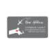 Unique & modern State of Massachusetts new address return address label set on a grey background with a red heart & aeroplane. Visit our shop to view matching moving announcement & postage stamp.