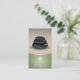This spa business card exudes serenity. Three massage stones are stacked on a clean wood surface coordinating with a curved sage green panel below. The business name is enhanced by a sun ornament with either a website or a phone number below. The wood panels are repeated on the reverse to show all contact information plus an area for appointment reminders. The sun ornament can be replaced with your own logo or other image if desired. Available in alternate colours with matching products.
