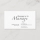 Communicate serenity and professionalism immediately with this minimalist massage text business card. The design relies on clean, elegant typography to convey a sense of calm and therapeutic expertise without relying on busy graphics. It is an ideal stationery choice for massage therapists, reflexologists, or spa owners who want to project a sophisticated brand image. The layout provides ample space for services, booking details, and essential oils info. Hand these out to establish a brand identity focused on holistic wellness and deep relaxation.