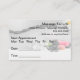 Customer appointment reminder business cards designed with a lightly printed graphic of a customer getting a hot stone massage and an appointment template that is easy to read and easy to use.