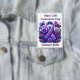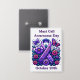An awareness button with a MCAS Warrior awareness ribbon in purple with white polka dots, flowers and butterflies.