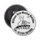 Butcher Shop bottle opener with your choice of company name and phone number. Illustration shows a sausage on a fork.