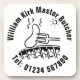 Butcher Shop coaster with your choice of company name and phone number. Illustration shows a sausage on a fork.