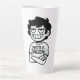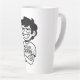 Latte Mug with bold and humorous black-and-white cartoon illustration of a character with a mischievous grin and sharp, sarcastic eyes. The character has slightly messy hair and is wearing a T-shirt that proudly proclaims, "MASTER OF SARCASM" in bold letters. Their arms are crossed confidently, emphasizing a cheeky and self-assured demeanor. The clean, minimalist design makes it an eye-catching statement piece.