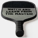 "Learn From the Master" pickleball paddle features a black diamond plate top and a silver bottom half. This pickleball paddle is perfect for master players who like to show off their skills.