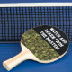 "Learn From the Master" ping pong paddle features a black diamond plate top and a green camouflage bottom half. This ping paddle is perfect for master ping pong players who like to show off their skills.
