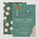 This retro modern "Master's Classic" golf tournament invitation features a red flag and golf balls with a fairway and bunker in a golf course . The reverse side features a dark green background with a golf ball and tee pattern. Personalize it for your needs. You can find matching products at my store.