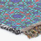 A quality printed throw has its advantages. This is a much finer weave throw than its loopier cousins, and though lighter, it is worth the investment for custom room accessorizing. The back is much prettier than the typical brown, and the fringe on the long sides very vivid, the selvage nicely done. Before photographing, I washed the throw in cold water, delicate, with a thicker woven throw the same size. On tumble dry low, this throw was dry in half the time as the other. This is a very practical quality if you use throws for furniture covers or to wrap up in frequently. The sleekness of the fabric makes it a great layer for accenting or protecting without the feeling of sitting on too much stuff. Perfect for napping or when you feel a light chill coming on. The color printing is beautiful and on this fabric, matched the design and color of my Photoshop image. This is an advantage for blending room fabrics and colors. The fringe on the short sides prints the colors from the design image and therefore varies from the side fringe. I streaked a white fractal line through the plaid pattern to give the illusion of weaving. This printed as crisp as an illusory thread, and put some white in the short side fringe, showing another advantage of print vs loomed- for artistic purposes, line lines, detail, and color integrity can be planned and preserved. My loomed throws have color limitations and more of a needlepoint texture. Print throws reproduce an exact image. The throw felt a little stiff straight out of the package, but this went away in the first delicate wash. Of course I searched the wash water for ink or bleeding and there was none.
