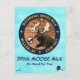 From world famous and entirely mythical Matanuska Moose Milk dairy farm in Willow Alaska; not too far from Anchorage. A bull moose (Alces alces) holding a glass of fresh moose milk. The moose is surrounded by a circular banner with the blue and yellow of Alaska's state flag. Text reading, "MATANUSKA MOOSE MILK", "WILLOW, AK", and "ESTD 1957", appear on the banner. Two customizable lines of text reading, "DRINK MOOSE MILK" and "It's Good For You." appear below the banner. You may change both the font and color of this text. Everything is superimposed on a snow background image.