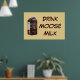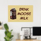 A milk carton from world famous and entirely mythical Matanuska Moose Milk dairy farm in Willow Alaska; not too far from Anchorage. The slogan "Drink Moose Milk" also appears. The logo image features a milkmaid hand milking Matilda, the farm's first dairy moose. Believe it or not there are moose dairies; a small number in Russia and one in Sweden. Moose milk is commercially farmed in Russia. A farm-born moose calf is taken from its mother within 2–3 hours after birth and is raised by people. It is first bottle-fed with a milk substitute, and later fed from a bucket. The animals imprint and become attached to humans. The milk is high in butterfat (10%) and solids (21.5%), according to data collected on Russian moose; research into American moose milk is in a less advanced state than in Russia, but appears to indicate that American moose have even higher concentrations of solids in their milk. Moose milk is said to be a bit salty and bitter; with a hint of pine or spruce needles. Moose milk is commercially farmed in Russia. A farm-born moose calf is taken from its mother within 2–3 hours after birth and is raised by people. It is first bottle-fed with a milk substitute, and later fed from a bucket. The animals imprint and become attached to humans. As with dairy cattle, calves are removed from their mothers after a short time.The Russians say moose soon recognise the milkmaids as their substitute as her substitute calves. At this point they are released to the forest; but visit the farm every day to be milked during the lactation period (typically, until September or October). During winter the animals roam free throughout the surrounding forest. But they usually do not stray too far, but spend much of their time at nearby woodlots where trees are being cut, feeding on the byproducts of timber operations. And they know the farm as the place for a daily rations of oatmeal, and as a safe place to give birth to their young. One Russian sanitorium serves moose milk to residents in the belief that it helps them recover from disease or manage chronic illness more effectively. Some Russian researchers have recommended that moose milk could be used for the prevention of gastroenterological diseases in children. The Elk (Moose are called Elk in Europe) House (Älgens Hus) farm in Bjurholm, Sweden is believed to be the world's only producer of moose cheese. The cheese sells for about 500 dollars per pound. Algens Hus' restaurant offers moose-cheese dishes. Cheese plain with bread or biscuits, or better yet, frozen moose mousse. Best served with raspberries.