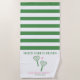 Looking for the perfect bachelorette party favour to commemorate your weekend with your besties? Look no further than our personalised beach towels, featuring the bride's name, the place where it all happened, and the playful slogan "Match Made in Heaven". With a stylish striped green design, these towels are the perfect way to show off your love of fun and sun.