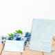 Wedding collection with fluffy clouds against a clear blue sky