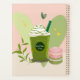 Cute design in pink and green with sweet treats, macarons, and a matcha latte.