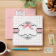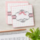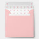 This Matching envelope features elegant French copperplate swirls, pink and green dots on a white background, hand painted ruffled fabric background, border and a beautiful hand painted pink silk bow. All made from original artwork by Audrey Jeanne Roberts. The result is a beautifully contemporary feminine ensemble. On the inside there is the same dot pattern and on the back flap a bracket revealing a place for your return address. YOU MIGHT ALSO ENJOY: