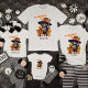 Celebrate Halloween in these customisable Halloween Shirts featuring a cat dressed up as a witch surrounded by pumpkins. The text on the shirt can be personalised with your family name, as well as the name of the individual wearing the shirt. Surprise your "Boo Crew" with something special during this year's Halloween Celebration by outfitting your entire family with these matching family Halloween shirts.