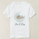Matching its a boy family shirts for baby shower This design features a delicate watercolor illustration of a baby boy resting on a soft, fluffy cloud, framed by a lush arrangement of midnight blue and champagne gold roses.