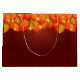 Large Gift Bag - - Change the Message and the NAME / Year on this Red with Orange Leaves Stars Design - - - - See my store for more items with this design including Plates, Napkins, Coasters, Balloons, Bunting, Desserts, Favour Boxes and lots more table settings and goodies.