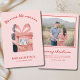Maternity Christmas Card Pink & Red Modern 2-Photo Holiday Card with Ultrasound Photo.