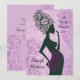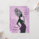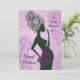 A contemporary design featuring a silhouette of a pregnant woman with flowers in her hair. The pink, mauve and lavender background has abstract floral swirls.
