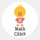 A yellow chick wears a pink tee with a pi symbol on cute and funny Math Chick t-shirts, tees and gifts perfect for Pi Day or Pi approximation Day. These also make cute any day gifts for the math geek or math teacher. Artwork © Chrissy H. Studios, LLC. All Rights Reserved.