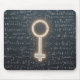 Stylized chalkboard background featuring complex, hand-drawn math formulas in various sizes and orientations. A glowing, dynamic light trail sweeps across the board, erasing parts of the formulas and revealing a clear, key-shaped outline. The composition symbolizes clarity and insight emerging from confusion or complexity. The chalkboard texture, subtle erasure smudges, and soft glow of the light trail create a visually engaging, illustrative, and modern conceptual image. Ample negative space allows for copy or overlay text.
